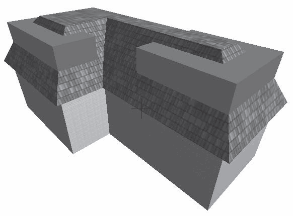 В окне просмотра и редактирования объемного отображения объекта зоны показываются как трехмерные объекты, имеющие непрозрачные грани [4] , но полые внутри. Поскольку боковые грани зоны чаще всего вертикальны, они могут пересекаться с другими объектами, расположенными под углом, например, к скатам крыш и балкам (рис. 6.8). Это может привести, например, к неправильному расчету объема зоны.