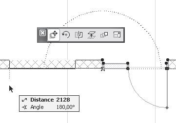 3. Переместив указатель мыши, определите новую точку расположения двери. Обратите внимание, что меняется только ширина стены, то есть размеры двери изменяются только по направлению, совпадающему с направлением базовой линии стены, в которой построена дверь.