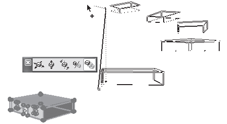 предназначена для изменения угла наклона объекта к плоскости уровня этажа. Применяется к стенам и колоннам. Для колонн доступна при щелчке кнопки мыши на конце базовой линии, для стен – на характеристической точке любого угла. Сторона стены или основание колонны, противоположные точке щелчка, не меняют точки своей привязки.