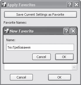 Вы уже знаете о кнопке Favorites (Избранное), с помощью которой можно сохранять установленные настройки объектов. Используем ее, чтобы сохранить настройки текста для ввода технических требований.