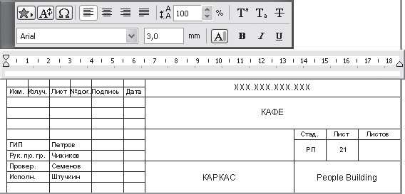 После указания размеров блока текста на экране откроется окно текстового редактора с панелью форматирования текста (рис. 9.5).