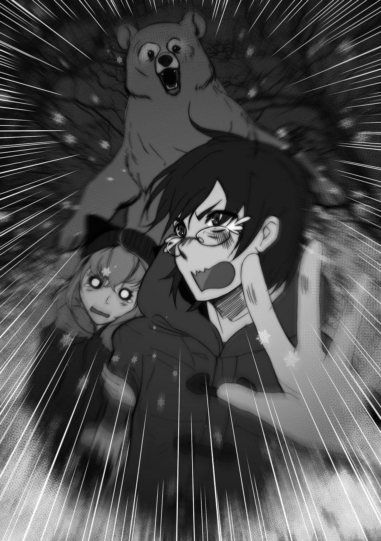 Слова застряли у нее в горле, когда она увидела за спиной выбирающегося из берлоги медведя. Мы что есть сил прорывались сквозь снег, а сзади нас косолапо преследовал бурый зверь. По счастью, он явно был сонный, так как расстояние между нами не уменьшалось.