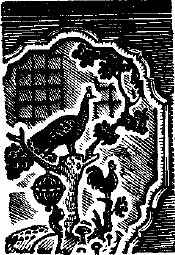 На возвышении рос дуб. Верхушка дуба была срезана и на срезе стоял павлин. На ветке дуба висела клетка с множеством колокольчиков. В клетке сидела сова. По другую сторону дерева на пеньке стоял петух. Под дубом рос большой гриб. Часть шляпки гриба была срезана, и в прорези виднелись римские и арабские цифры. Часы были сделаны из золоченой бронзы различных оттенков. Подножие выложено красивыми розовыми каменьями. По величине часы были больше человеческого роста.