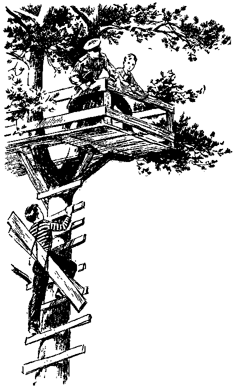 Пока Алька возился с Тобиком, Саша и Слава, как обезьяны, лазали то вверх, то вниз по стволу сосны, поднося старшему лейтенанту инструменты и доски.