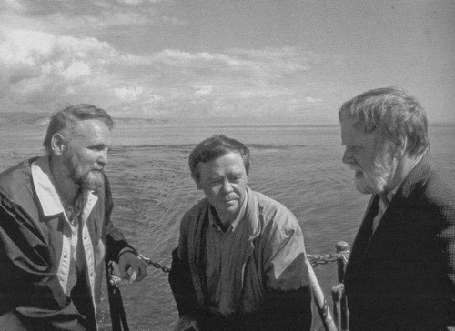 Начало международного Байкальского движения «За спасение пресных вод». Валентин Распутин с Владимиром Крупиным и Василием Беловым на палубе катера