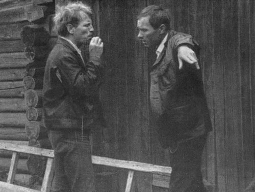 С Василием Беловым во время съемок фильма «Калина красная». «Про нас с тобой говорят, что у нас это эпизод. Что мы взлетели на волне, а дальше у нас не хватит культуры»