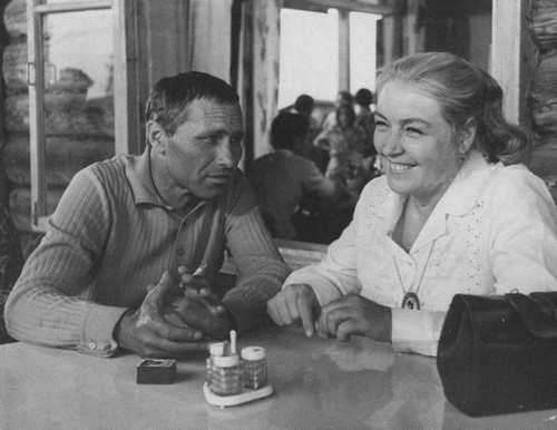 Кадр из фильма «Калина красная». В главных ролях В. М. Шукшин и Л. Н. Федосеева-Шукшина. «Вася был счастливый, что ты у него была»