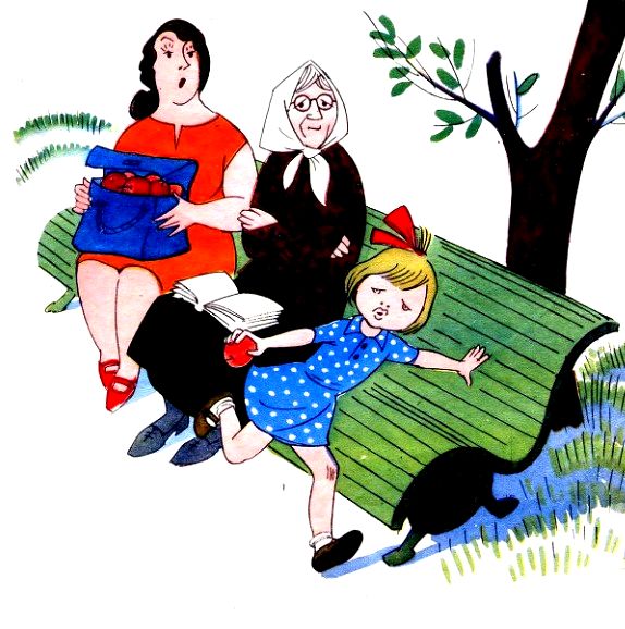 Ей хотелось провалиться сквозь землю или хотя бы убежать со двора. Но вместо этого её ноги побежали к зелёной скамейке, где сидели рядышком две соседки — Анна Спиридоновна и Наталья Петровна.