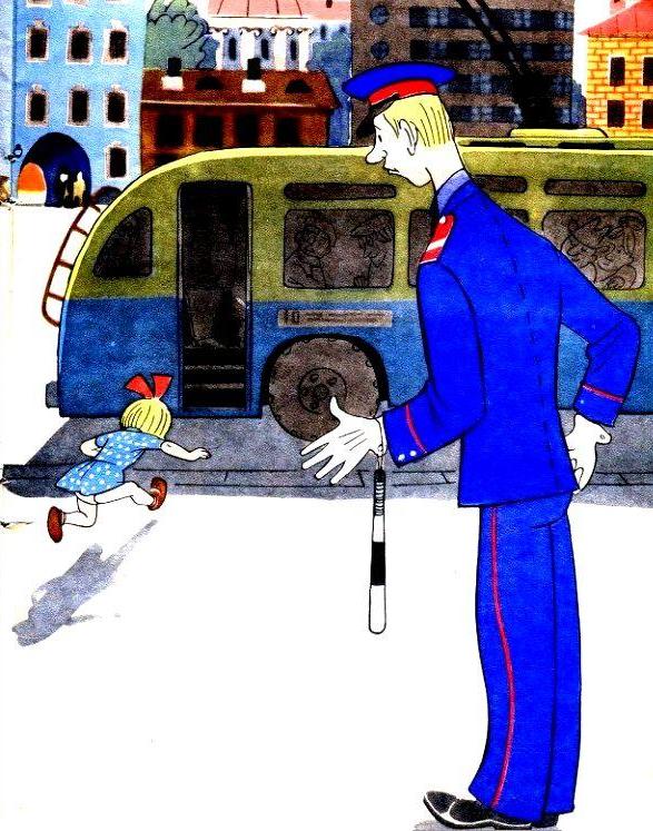 — Ты куда, девочка?- закричал милиционер и схватил Машу за руку. Лицо у милиционера было очень доброе. А нос был круглый, как у Машиной бабушки. Поэтому он немного был похож на Машину бабушку.