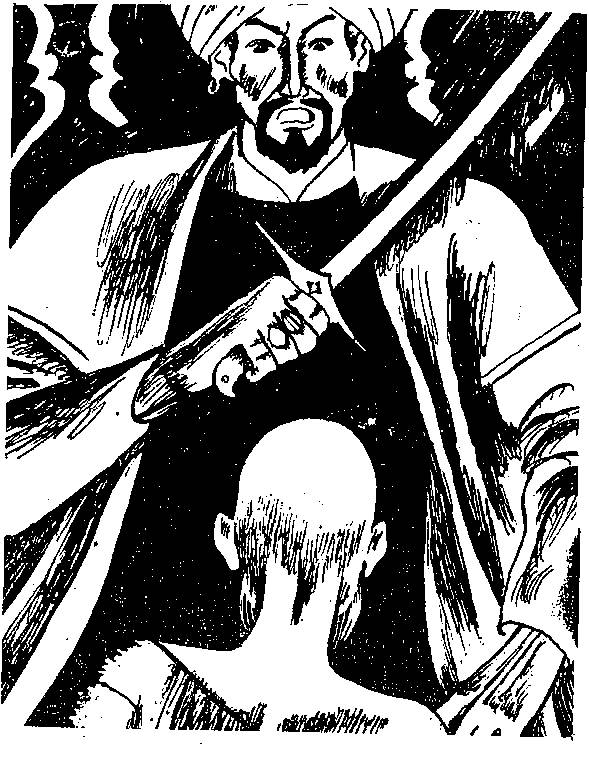 Бритая голова брата тряслась все сильнее, глаза сверкали все безумнее. Стуча зубами, Абдул-Азиз двинулся вперед. Старший стал отступать к стене, выставив саблю и слегка пошевеливая ею. Но Абдул-Азиза это не остановило, он надвигался на брата, а тот уже ощутил лопатками твердую поверхность стены. Бросил халат, Езмахнул саблей.