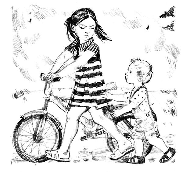 — Да, девочка! — подтверждала я и тянула велосипед к себе.