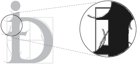 Говоря о том, что растровая графика чувствительна к изменению размеров, нельзя преуменьшать: это самая большая и, к сожалению, нерешаемая проблема. При увеличении растрового рисунка пикселы, из которых он состоит, увеличиваются вместе с ним. Мы говорили, что иллюзия цельного изображения связана с малым размером пикселов – так что по мере их увеличения иллюзия становится все менее убедительной, и в конце концов мы уже не сможем сосредоточиться на изображении в целом, поскольку большие пикселы будут отвлекать.