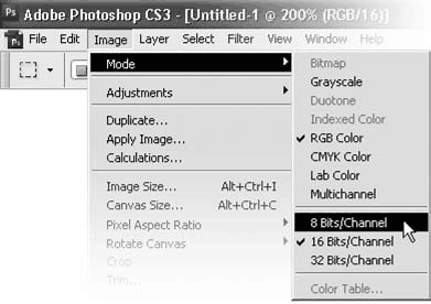 Глубину разрешения цвета можно изменить командами Image– > Mode (Изображение -> Режим) (рис. 8.2).