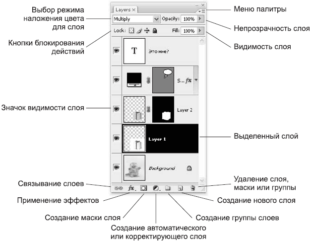 Помимо уже рассмотренных нами настроек слоя, существуют и другие настройки, доступные на палитре Layers (Слои) (рис. 10.4).