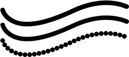 Рис. 12.21. Линии, проведенные при разных значениях параметра Spacing (Расстояние) инструмента Brush (Кисть)