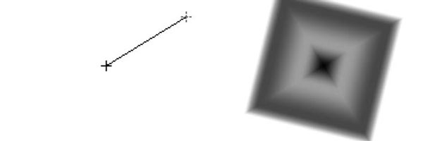 • для типа градиента Diamond (Бриллиант) начало линии определяет центр градиента, а ее длина – размер (аналогично радиальному градиенту), однако при этом важен и угол проведения линии, так как соответственно ему будут повернуты квадраты градиентных полос (рис. 12.43).