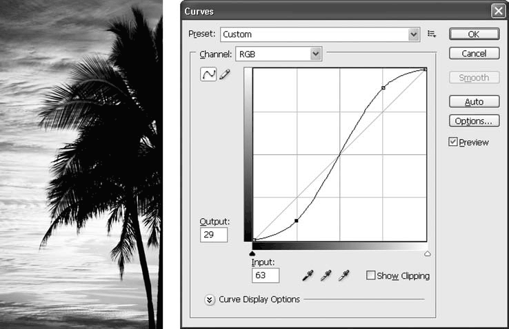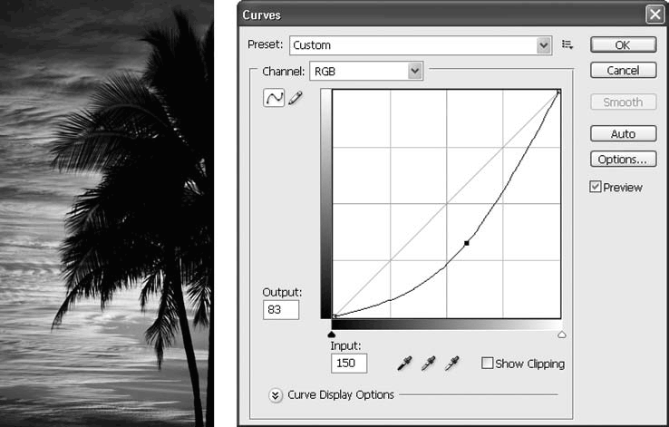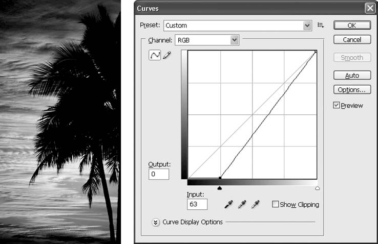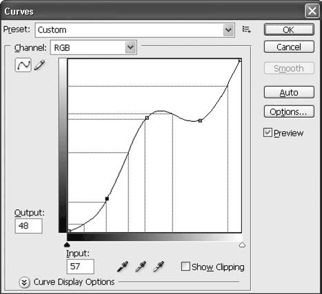 Рис. 13.18. Ограничение яркостного диапазона с помощью команды Curves (Кривые)