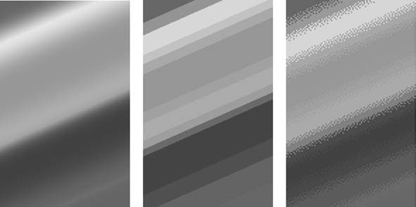 Чтобы компенсировать искажения цвета, используют специальную технику под названием «Dithering» (смешение). Она выполняется графическими программами автоматически при преобразовании изображений в другие цветовые режимы (с малым количеством цветов), и суть ее в том, что пикселы разных цветов «перемешиваются» для имитации недостающих промежуточных оттенков. Это позволяет до некоторой степени сгладить и замаскировать резкие смены оттенков (рис. 2.8).