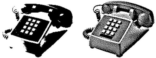 При преобразовании в монохромный режим нужно использовать dithering (смешение цветов) для имитации оттенков. Без смешения результат будет не только некрасивым, но и, возможно, неузнаваемым. При смешении можно достичь не только узнаваемого, но и оригинально выглядящего изображения (рис. 2.10).