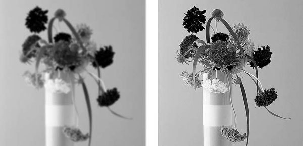 Рис. 17.10. Размывание инструментом Blur (Размытие) (слева) и повышение четкости инструментом Sharpen (Повышение резкости) (справа)