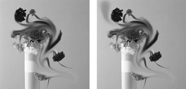 Рис. 17.13. Смазывание участков изображения инструментом Smudge (Смазывание) с низкой (слева) и высокой (справа) силой