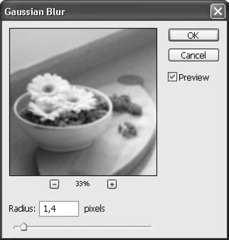 Рис. 18.2. Окно команды Gaussian Blur (Гауссово размытие)