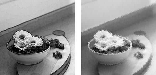 Рис. 18.21. Результат действия фильтров Cutout (Вырезание) (слева) и Watercolor (Акварель) (справа)