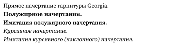 Рис. 20.13. Реальные и имитированные начертания гарнитуры