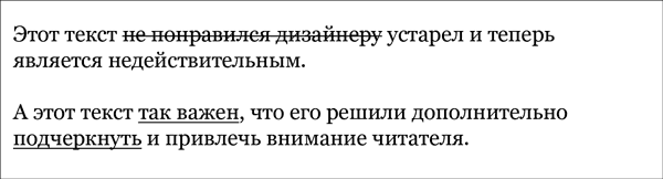 Подчеркивание и перечеркивание (рис. 20.16) применяются преимущественно в дизайнерских целях и иногда – в деловой документации (в европейской традиции).