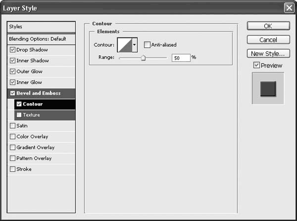 Рис. 21.23. Использование эффекта Contour (Контур) при создании иллюзии объемности