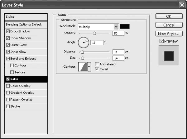 Рис. 21.26. Раздел Satin (Атлас) окна Layer Style (Стиль слоя)