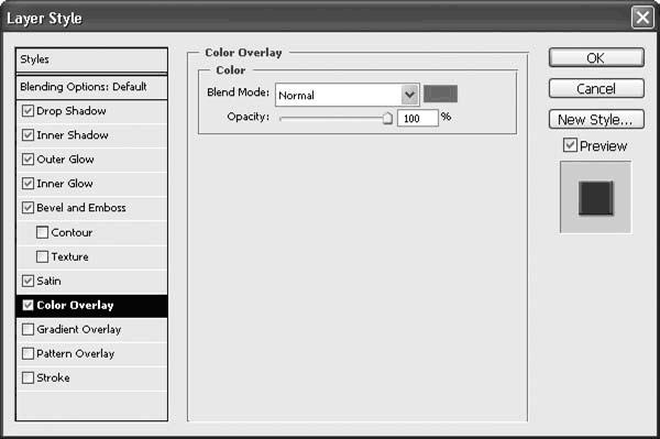 Рис. 21.28. Раздел Color Overlay (Наложение цвета) окна Layer Style (Стиль слоя)