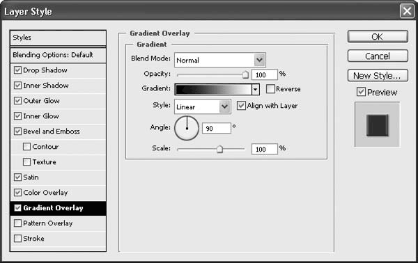 Рис. 21.29. Раздел Gradient Overlay (Наложение градиента) окна Layer Style (Стиль слоя)