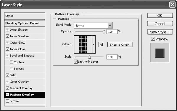 Рис. 21.31. Раздел Pattern Overlay (Наложение узора) окна Layer Style (Стиль слоя)