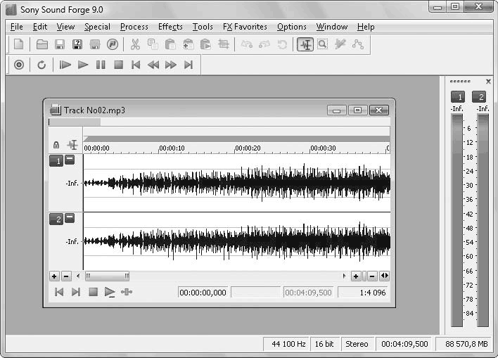Рис. 3.5. Звуковой файл, загруженный в окно программы Sound Forge 9.0