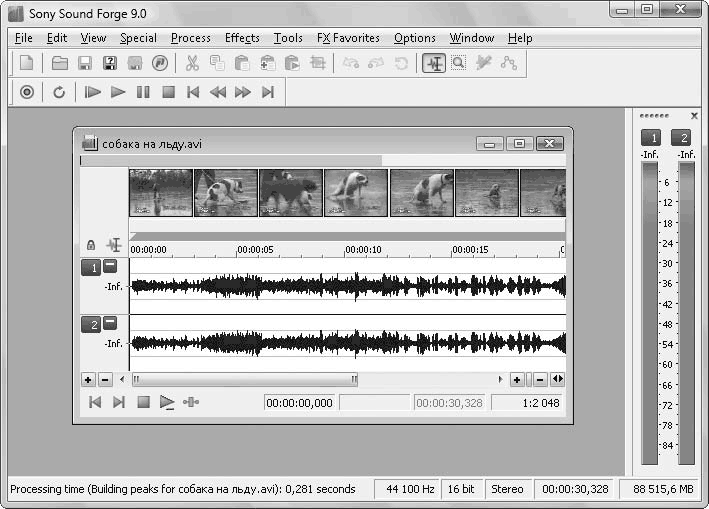 Рис. 3.6. Файл формата AVI, открытый в программе Sound Forge 9.0