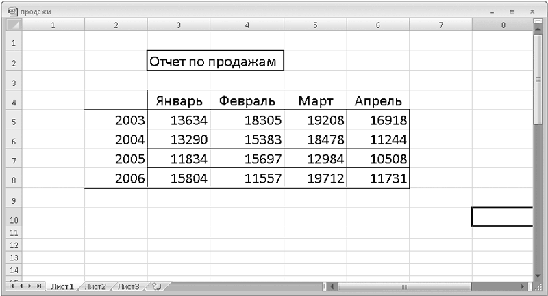 По умолчанию ячейки не имеют видимых границ: вы видите тонкие серые линии, разграничивающие ячейки, но эти линии не отображаются при печати документа. Иногда же требуется, чтобы напечатанная таблица имела четкие границы (рис. 3.10).