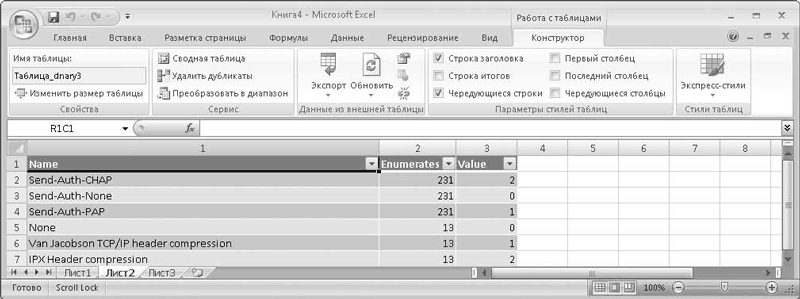 7. Щелкните кнопкой мыши на ячейке R2C1.