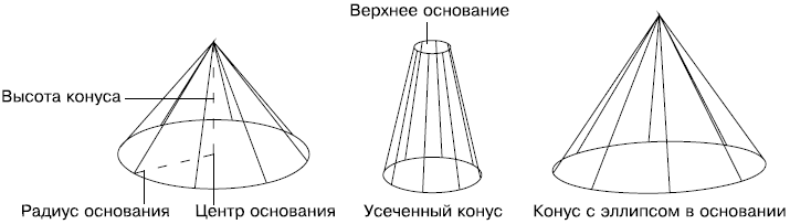 Еще одной типовой фигурой является цилиндр (рис. 11.5). Как и в случае с конусом, основанием цилиндра может быть как окружность, так и эллипс.