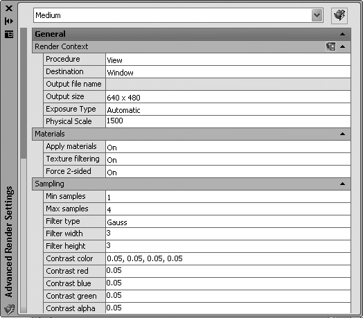 Запустите команду RENDER, щелкнув на одноименной кнопке на панели Render (Тонирование) или на вкладке Output (Вывод) в группе Render (Тонирование) ленты. Вы также можете выбрать соответствующий пункт в подменю View– > Render (Вид -> Тонирование).