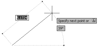 Положение точки можно определить комбинированным способом: используя как клавиатуру, так и мышь. Чтобы указать положение очередной точки с помощью этого метода, переместите мышь в нужном направлении, а затем введите с клавиатуры расстояние от предыдущей до новой точки и нажмите клавишу Enter. Данный способ удобно совмещать с использованием ортогонального режима или полярной привязки.