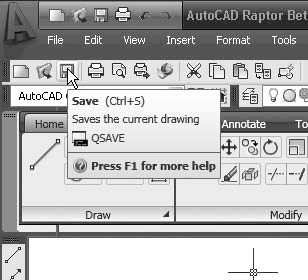 Панели инструментов являются графическим интерфейсом команд программы AutoCAD. Визуально это графические кнопки, вызывающие соответствующие им команды. Помимо графического изображения, о назначении кнопки вы можете узнать, подведя к ней указатель мыши. На экране появится всплывающая подсказка с кратким описанием команды. Если для команды назначено сочетание клавиш быстрого вызова, оно также будет показано во всплывающей подсказке. На рис. 1.7 показана панель инструментов Standard (Стандартная) с указателем мыши, наведенным на кнопку Save (Сохранить).