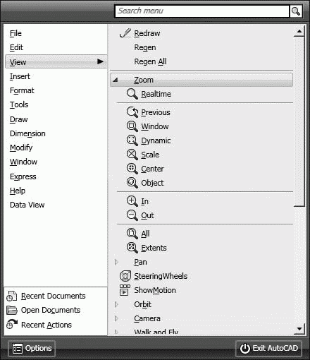 Рис. 6.3. Команда зумирования в падающем меню