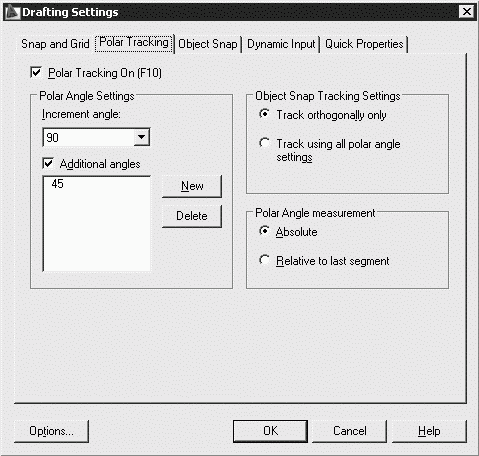 • Polar Tracking On (F10) – включение полярного отслеживания.