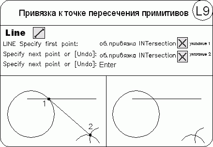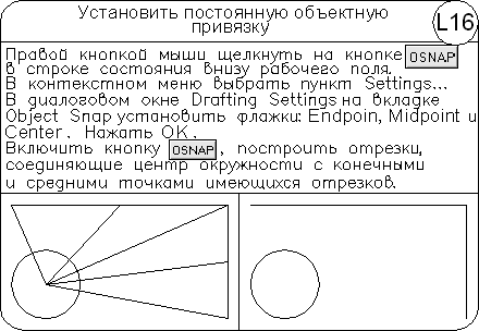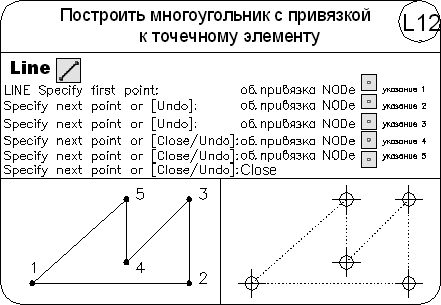 • Ang – построение прямой по точке и углу. Есть два способа задать угол для построения прямых. Можно либо выбрать опорную линию и указать угол между нею и прямой, либо (для построения прямой, лежащей под определенным углом к горизонтальной оси) указать угол и точку, через которую должна проходить прямая. Построенные прямые всегда параллельны текущей ПСК;
