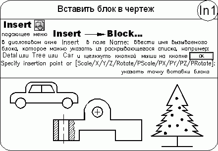 При вставке одного рисунка в другой AutoCAD обрабатывает вставленный рисунок так же, как и обычное вхождение блока.