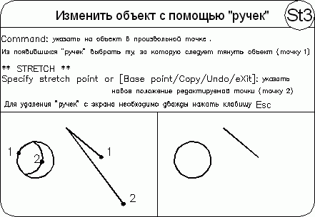 Имеется возможность изменять центральные углы дуг и длин некоторых объектов. В частности, допускается изменение длины разомкнутых последовательностей отрезков, дуг, разомкнутых полилиний, эллиптических дуг и разомкнутых сплайнов. В зависимости от ситуации этот процесс подобен либо удлинению, либо обрезке. Изменение длины может производиться различными способами: