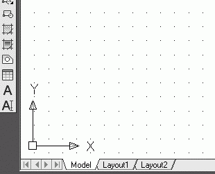 После того как пользователь завершил создание модели, он обычно переходит на закладку Layout и начинает компоновать лист чертежа. При первом обращении к листу на нем создается один видовой экран; изображение листа с тенью и выполненный штриховыми линиями прямоугольник символизируют текущий формат листа и границы области его печати.