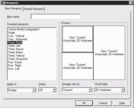 Вновь создаваемые плавающие видовые экраны можно расположить в любом месте области рисунка. Как и в случае с неперекрывающимися видовыми экранами, для них допустим выбор одной из стандартных конфигураций.