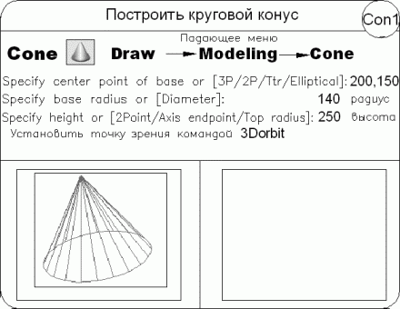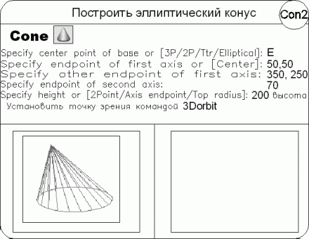 Specify height or [2Point/Axis endpoint/Top radius]: – указать высоту или один из ключей
